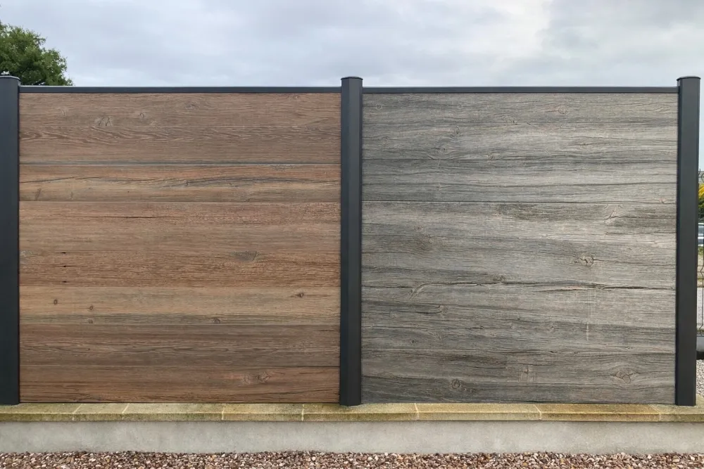 - Clôture composite : matériau résistant aux intempéries, aux UV et à l’humidité, conçu pour conserver son aspect sans déformation ni décoloration.